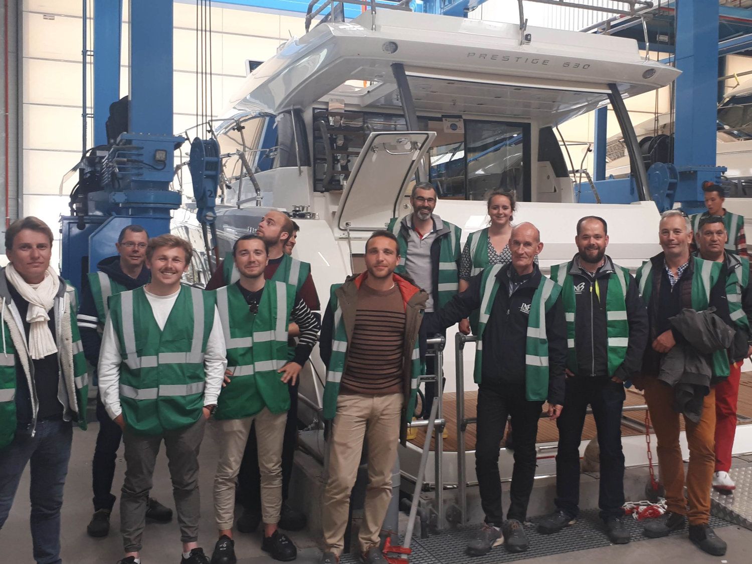 Le programme d'immersion dans les bateaux s'est poursuivi à terre. C'est le partenaire Jeanneau qui a ouvert ses portes à deux groupes de Techni-co. A commencer par les étudiants 2e année de la formation initale de Concarneau qui, avec leurs hôtes anglais, ont visité les sites de production des Herbiers. Les stagiaires de la formation Reconversion ont pris le relais et ont pu découvrir les lignes de fabrication des Prestige. Ces visites sont une opportunité de mieux appréhender les techniques de fabrication et la chaîne d'approvisionnement.